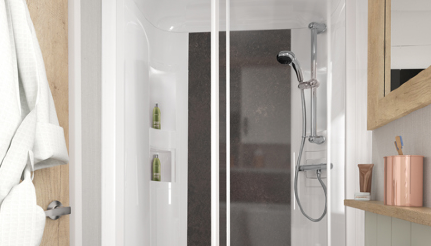 - Shower cubicle with thermostatic shower, topper and LED downlights