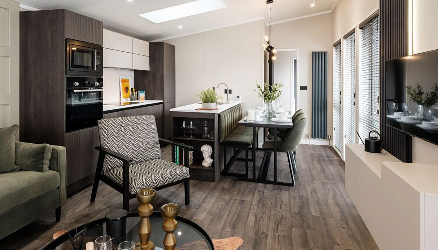 As soon as you step into the lounge, you'll be taken aback by the amount of space you have to relax. From the huge L-shaped sofa, to the feature shaker wall panelling, from the large windows, to the stylish design accents - the Kahlo leaves no compromises, offering a truly unforgettable holiday experience for you, the family and your friends.