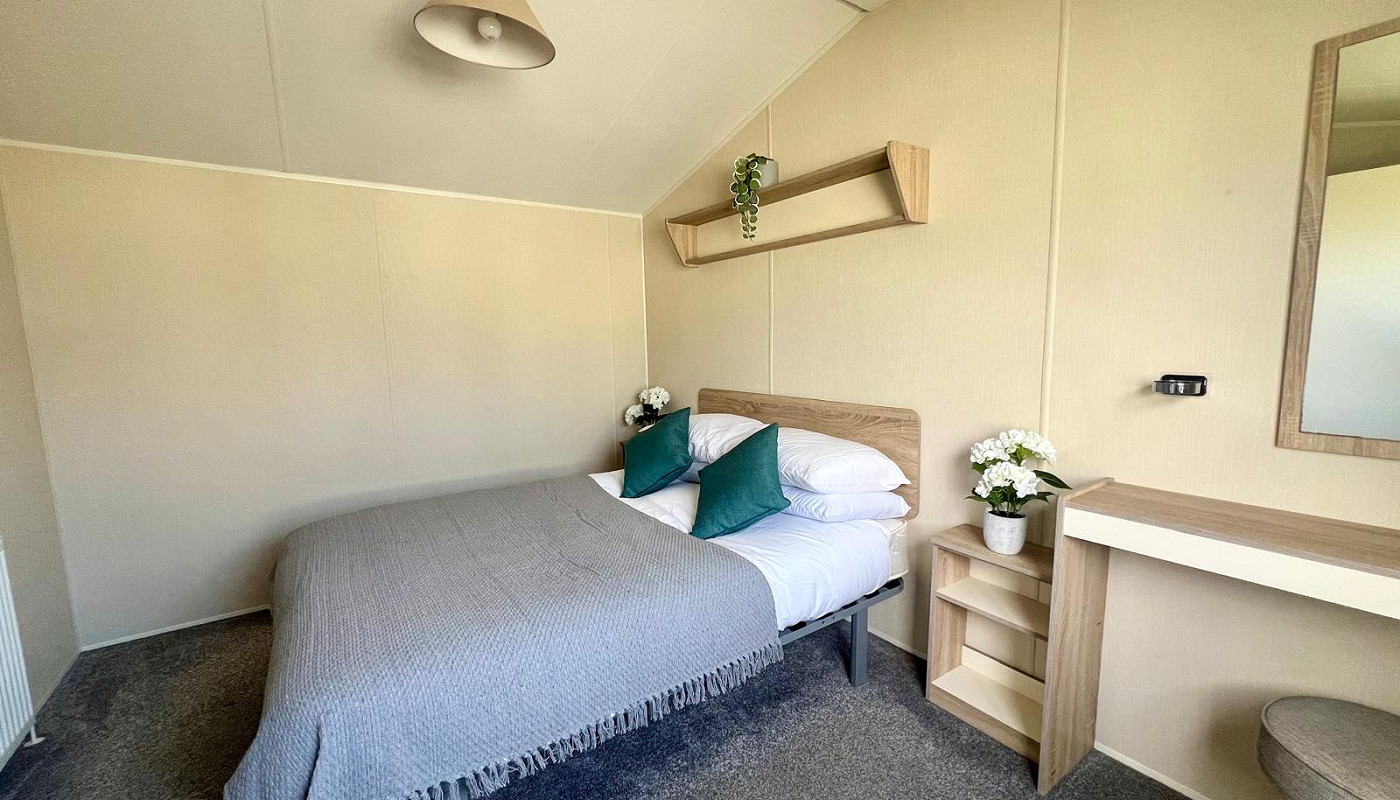 Holiday home package price £34,995 (includes VAT, siting, connections and two 47KG gas bottles) AND FOR FIRST TIME BUYERS - THERE IS NO PARK FEE TO PAY UNTIL 2027