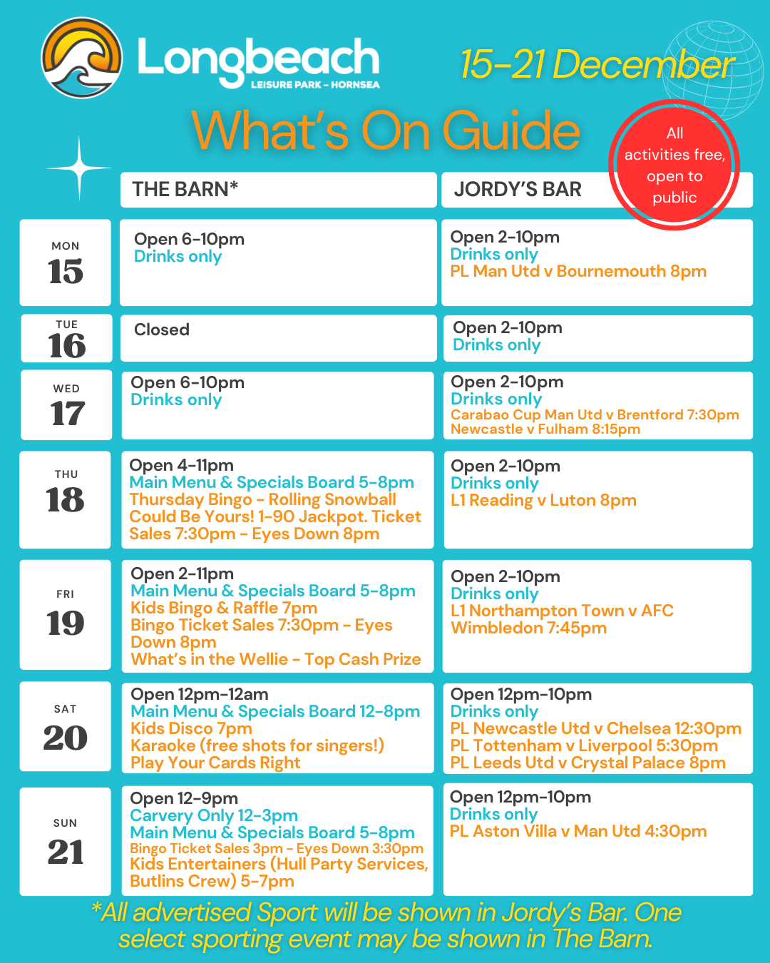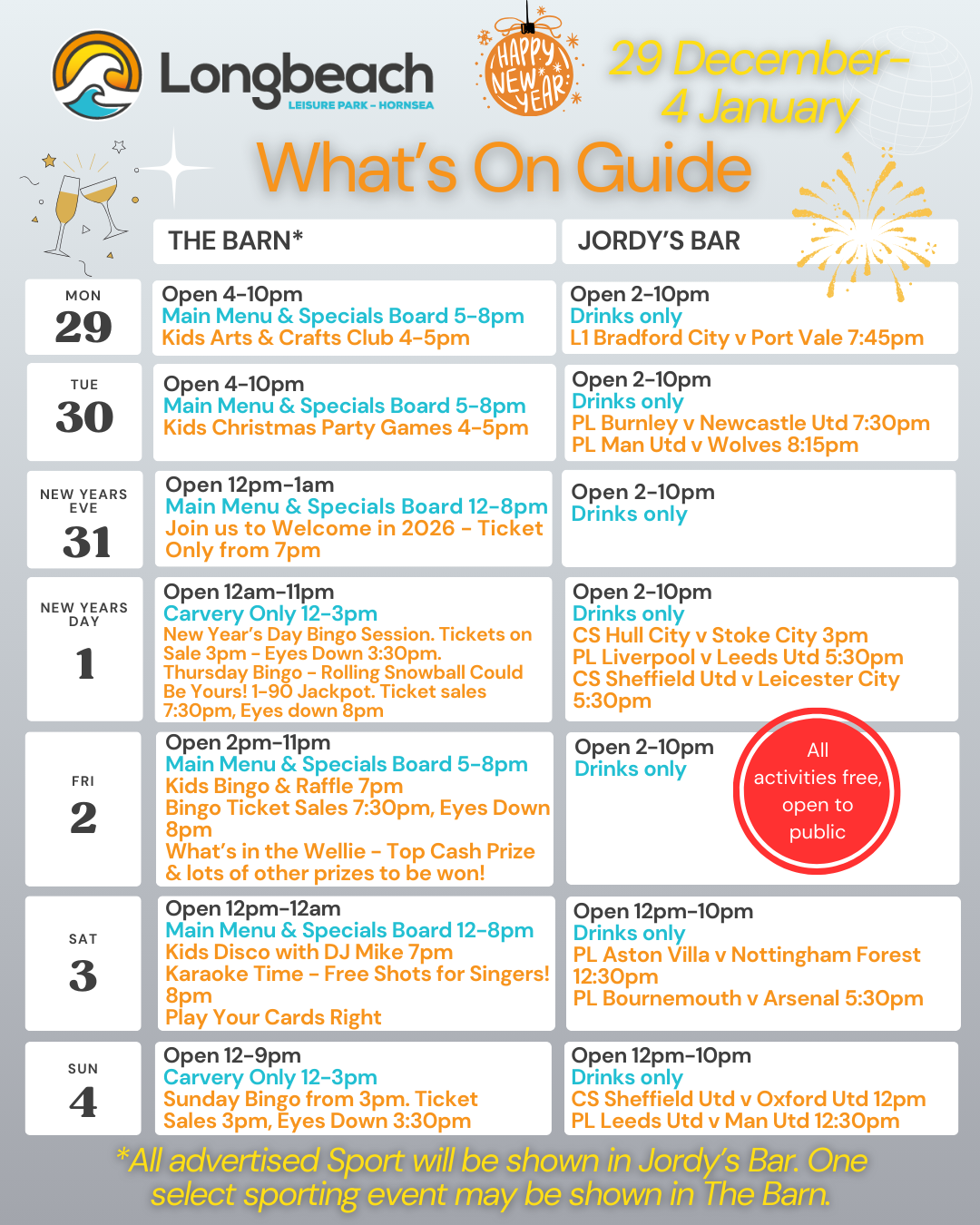 The Barn is well-known for hosting an array of regular events. Guests can look forward to exciting bingo and quiz nights, spirited pool and darts competitions, and captivating live music performances that create an energetic and welcoming atmosphere.